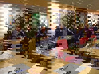 Her overrekkes han blomster av leder Sigurd A. Fjær på styremøtet 6. november.