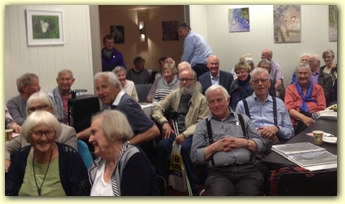 Historielaget serverte kaffe og Jubileumskake til alle som møtte opp på Vegamot kafe på jubileumsdagen mandag 9. mai 2016. Konferansier var formann Jan Habberstad.